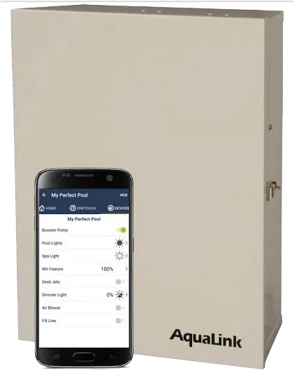 System automation comes in many different forms. The majority of them accomplish the same thing. They put the control of many features of your pool including, Lights, pump function, Spa control, spa feature control, and even landscaping lights/equipment.